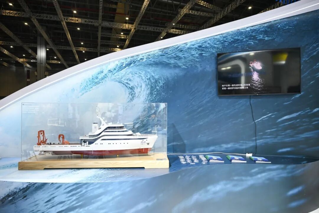展区内一艘船模吸引了参观者的目光,这是依托海洋与地球科学学院管理运行的“同济”号智能海洋科考船。该船具备岸基遥控、自主航行、智能能效管理等核心功能,以2000吨级平台实现3000吨级科考作业能力,可开展海洋地质、生态、大气等综合科考任务。将年均执行240天海上任务,支撑国家重大科技基础设施运维、国际大洋钻探研究及长三角高校涉海人才培养。