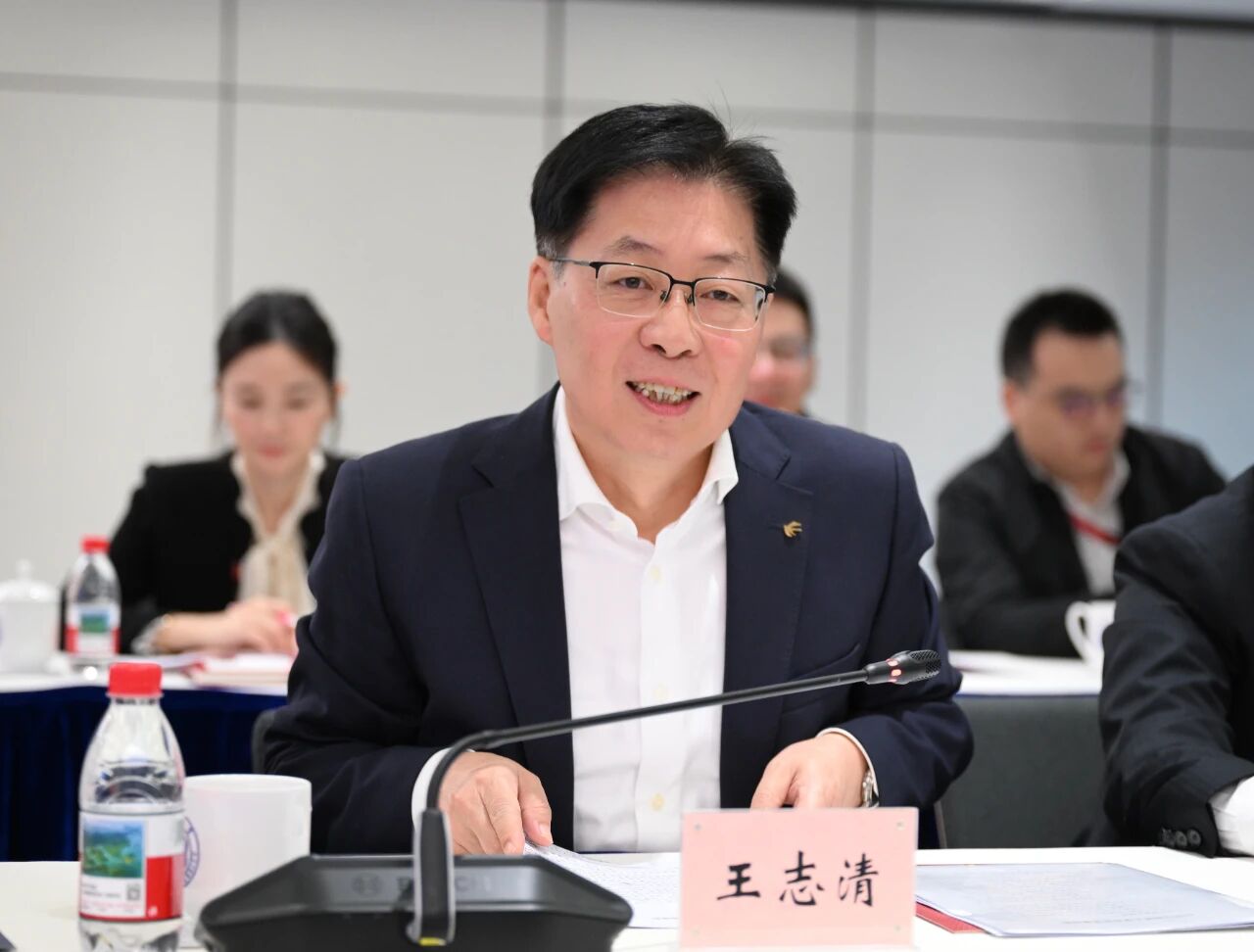中国东航董事长、党组书记王志清,同济大学党委书记、中国工程院院士郑庆华出席签约座谈会并致辞,同济大学原党委书记方守恩,中国东航董事、党组副书记成国伟,同济大学副校长石振明等出席。