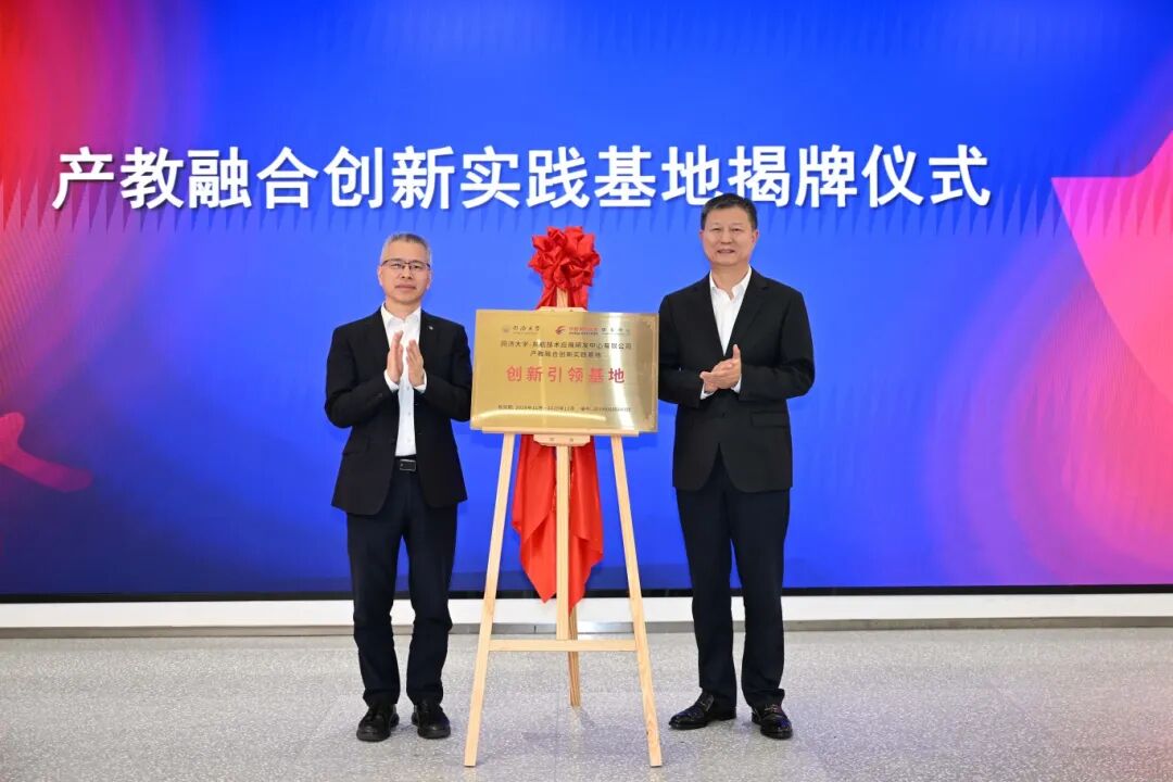 会上,双方代表汇报了科研合作情况。同济大学交通学院、东航技术应用研发中心有限公司负责人共同为“产教融合创新实践基地”揭牌。