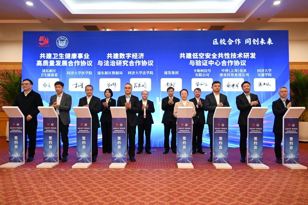 签约发布仪式上,浦东新区与同济大学12个合作项目集中发布。聚焦医学概念验证、城市更新、智能汽车、卫生健康、数字经济与法治研究、低空经济等六大领域,首批6个合作项目签约。