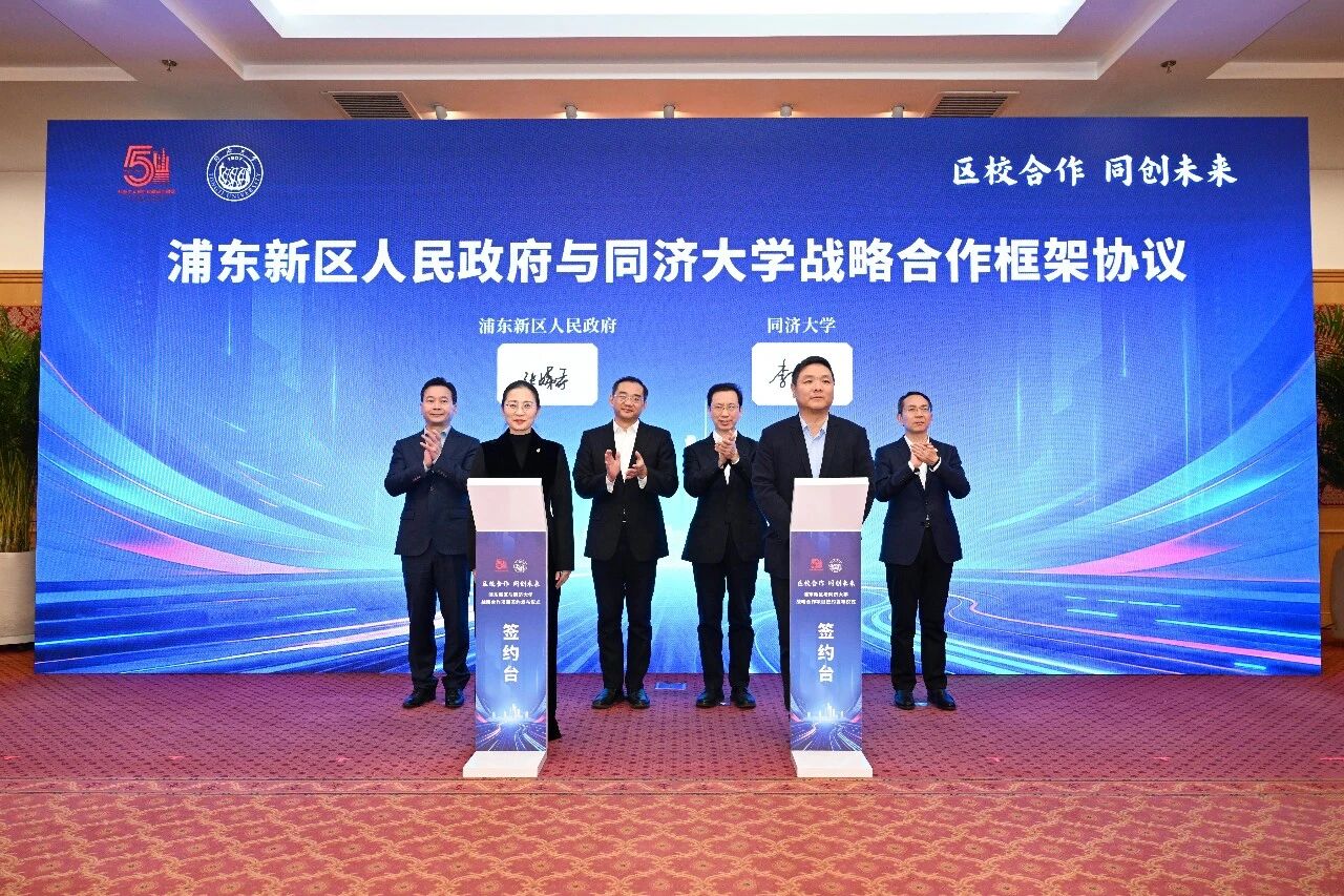 区校合作,同创未来。12月29日下午,同济大学与上海市浦东新区人民政府签署战略合作框架协议,进一步深化双方合作,共同把握“十五五”新一轮发展机遇,为上海加快建成具有世界影响力的社会主义现代化国际大都市作出新的贡献。