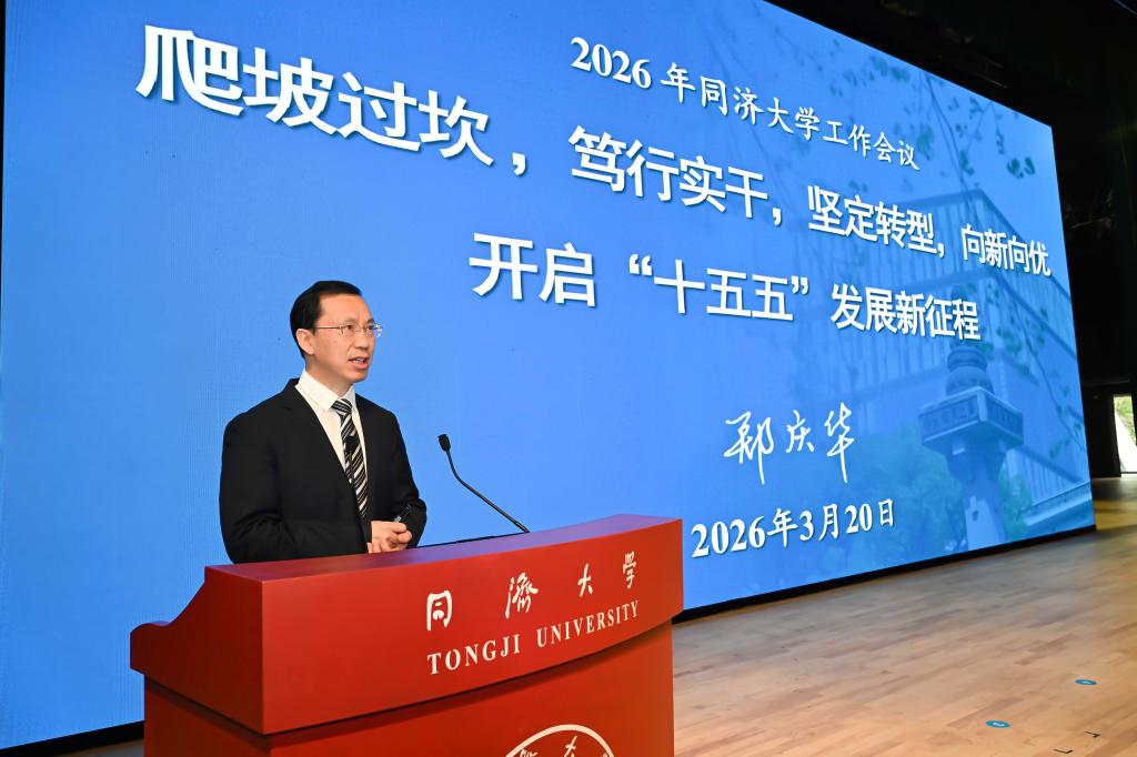 排出“时间表”,绘好“路线图”,下达“任务书”。3月20日下午,2026年同济大学工作会议召开,校党委书记、中国工程院院士郑庆华讲话,校长、中国科学院院士杨金龙部署今年学校重点工作。校党委常务副书记朱小杰主持会议。主会场设在四平路校区大礼堂,在嘉定校区济人楼设分会场。