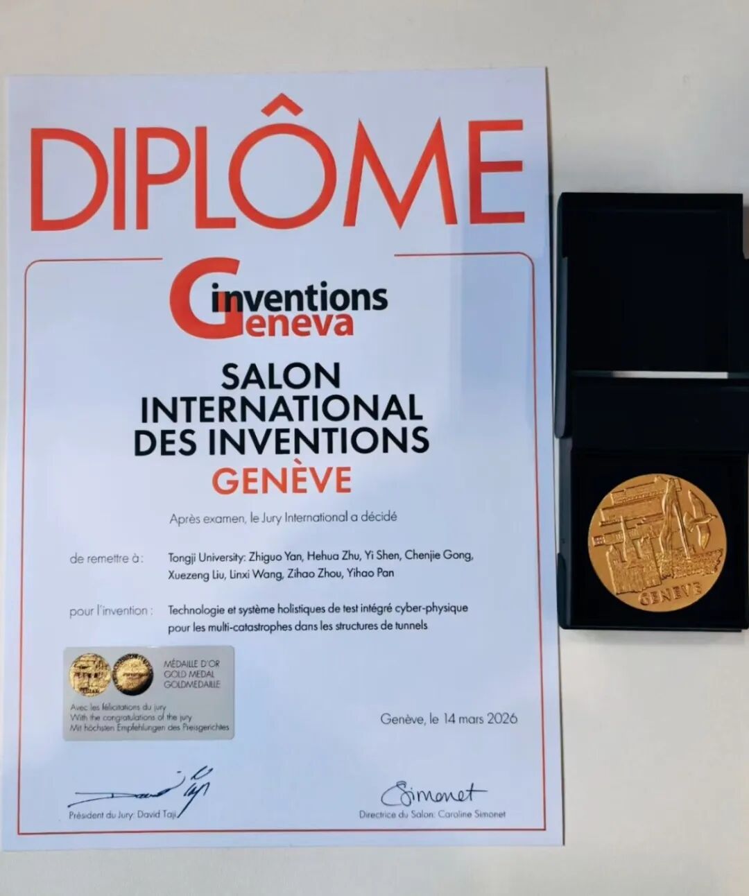 同济大学2项成果获日内瓦国际发明展“评审团特别嘉许金奖”