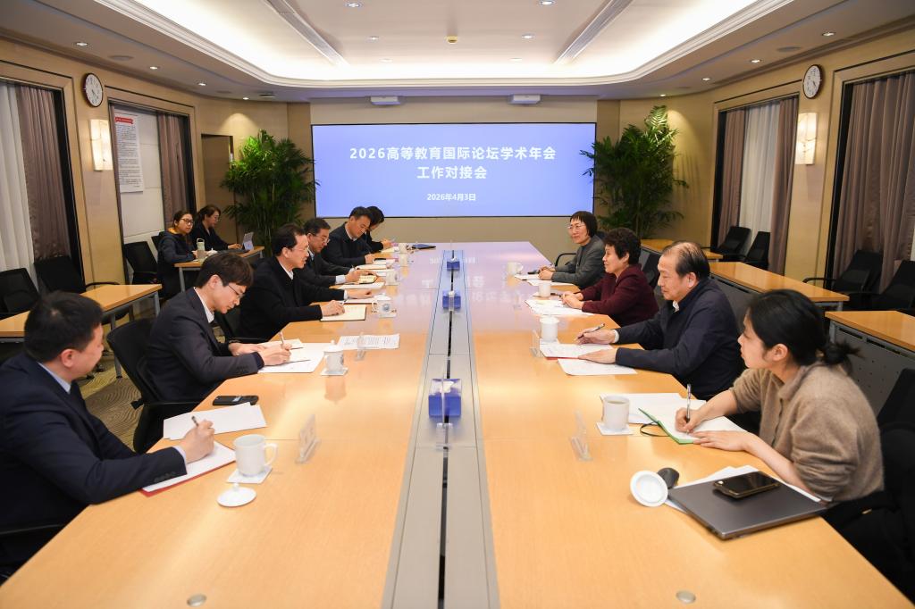 4月3日,中国高等教育学会(以下简称“学会”)会长、教育部原副部长林蕙青一行来校调研,就2026高等教育国际论坛学术年会工作事宜进行对接交流。校党委书记、中国工程院院士郑庆华,学会副会长、教育部高等教育司原司长张大良,校党委常务副书记朱小杰,学会副秘书长、学术与交流部主任高晓杰,以及学校相关单位负责人出席。