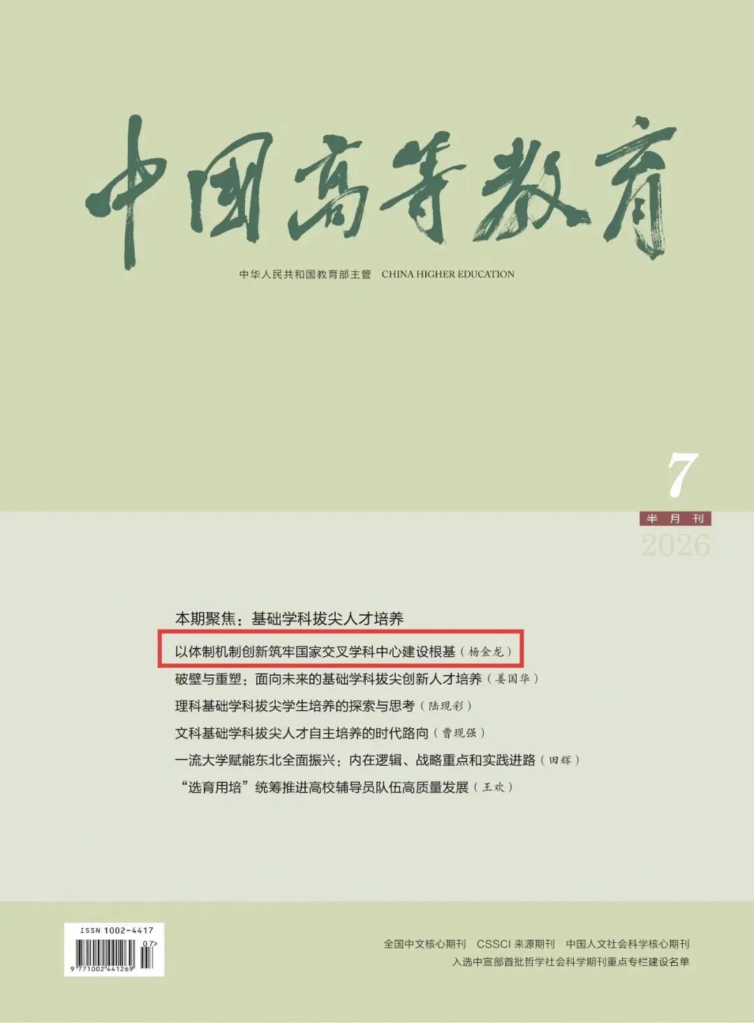 《中国高等教育》卷首评论刊发校长杨金龙署名文章《以体制机制创新筑牢国家交叉学科中心建设根基》