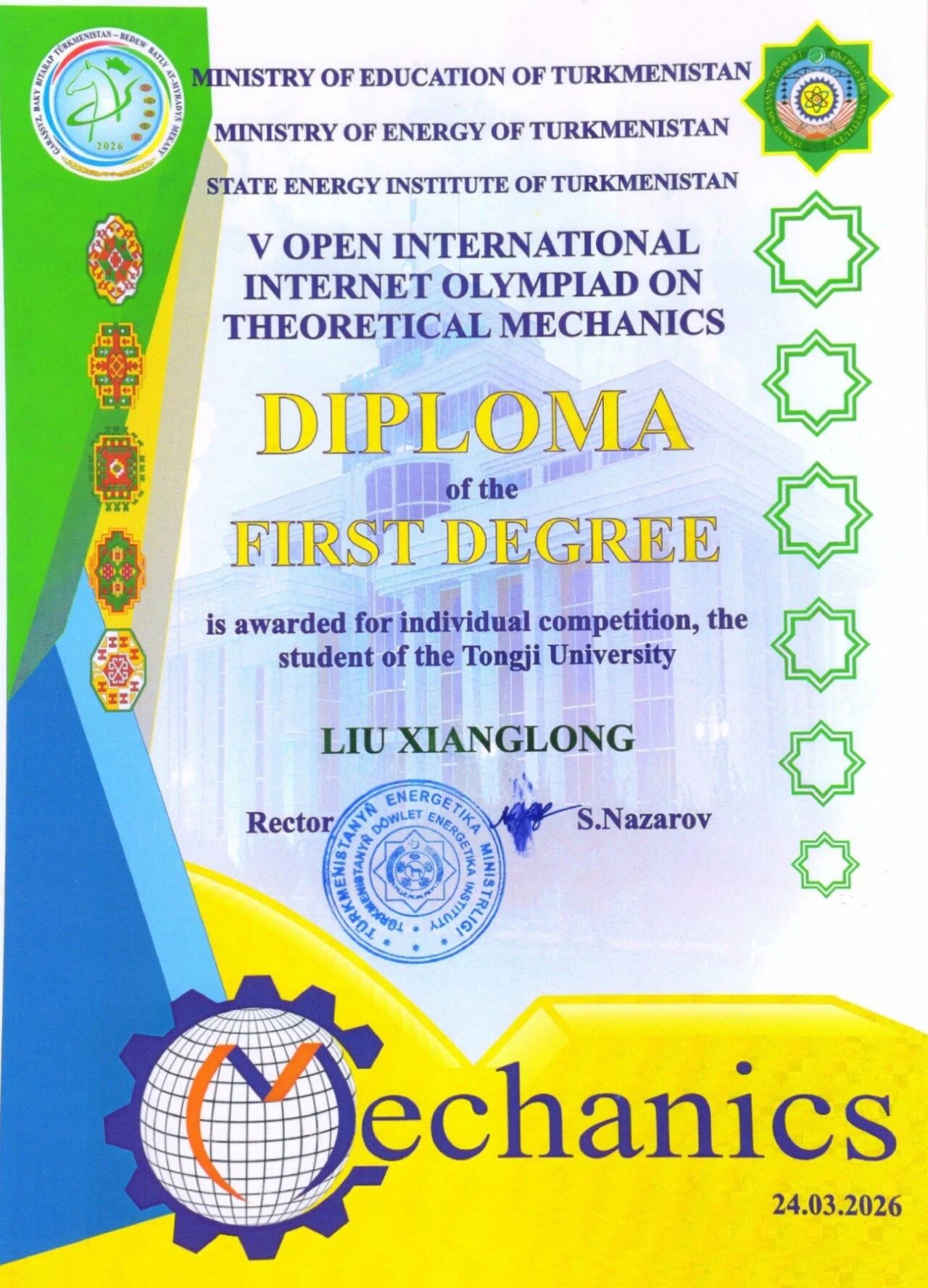 同济学子获国际奥林匹克互联网学科竞赛“理论力学”和“材料力学”竞赛7个一等奖,并获材料力学竞赛全球第一