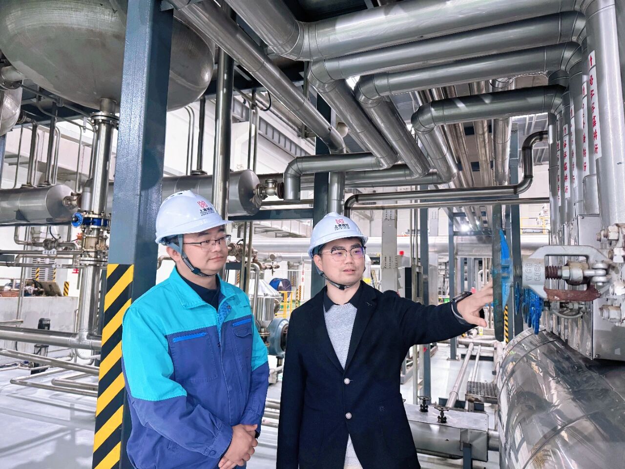 周涛(右一)在介绍餐厨垃圾浆液高值化利用技术工艺