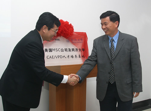5月18日下午,美国MSC公司与同济共建的CAE/VPD人才培养基地在彰武路校区航空航天与力学学院揭牌,这是该专业领域国内高校中首个人才培养基地。为了首期人才培养,MSC公司向我校赠送了价值300万元人民币的教学软件,双方将通过共同努力,使基地发展成为中国CAE/VPD人才培养的中心。