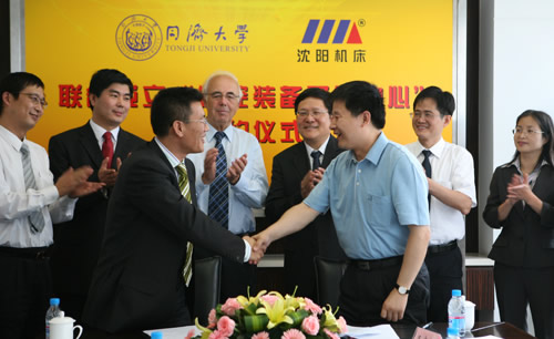 同济联手国内最大的机床制造商——沈阳机床集团共建“数控装备研发中心”,旨在通过长期密切合作,提高我国数控机床装备制造的自主创新能力。10月20日,我校副校长李国强与沈阳机床集团总经理关锡友分别代表双方签署了合作框架协议。校党委书记周家伦到会致辞。