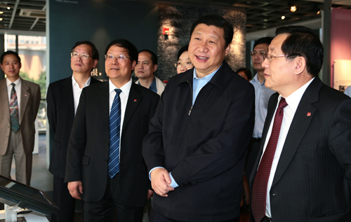 上午9时许,在周家伦、万钢等校领导陪同下,习近平一行首先来到我校新建的校史馆,在一至三层的展厅参观了一幅幅老照片和一件件陈列着的实物,听取了同济百年发展历程的讲解。