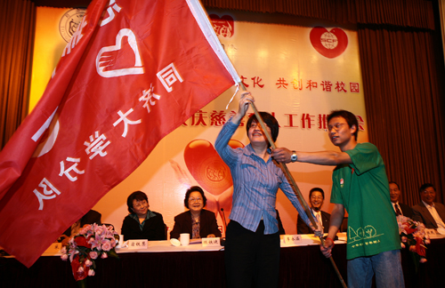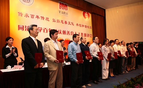 会上,市慈善基金会理事长陈铁迪和常务副校长李永盛共同为“上海慈善物资管理中心同济大学工作站”揭牌;市民政局副局长张喆人和市慈善基金会顾问崔善江为“经常性社会捐助(同济)接收点”揭牌;市慈善基金会副理事长袁采和市文明办主任陈振民为同济大学慈善爱心屋揭牌;市慈善基金会副理事长、市慈善义工总队队长万明为慈善义工同济大学分队授旗。大会在全体义工庄严、洪亮的宣誓声中达到了高潮。