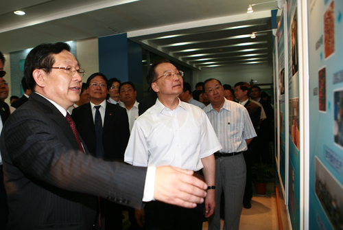 上午10时15分许,温家宝总理首先来到大学生活动中心,参观大学生科技创新作品展,与同学们亲切交谈,了解同学们对于科技创新的认识和理解,以及为此作出的探索和努力;随后,温总理又来到海洋学院大楼,听取汪品先院士对同济大学海洋学科近年来发展情况的介绍,参观了海洋学院实验室,还观看了我校自主创新科技成果展示。