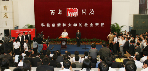 这一天,在同济大学即将迎来建校100周年庆典,校园里处处洋溢着喜庆气氛的时刻,我们敬爱的温家宝总理专程来到同济大学视察,向师生们送上了节日的祝贺。