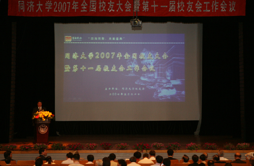 5月20日下午,2007年全国校友大会暨第十一届校友会工作会议在一二九礼堂召开,来自海内外各地校友会的理事长、副理事长、秘书长,部分知名校友,以及各地校友会代表500余人出席会议。校党委书记周家伦到会致辞。校友总会副会长黄鼎业主持会议。