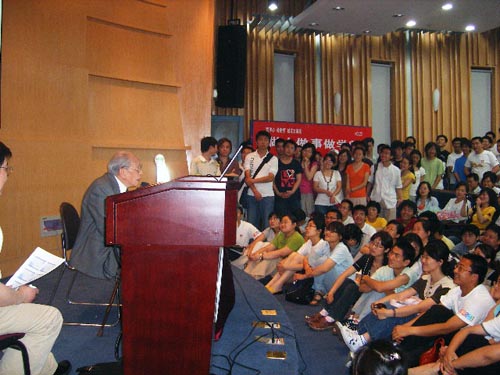 裘法祖教授第一句话就是“今天,我回家了。”在场的每一个人无不为之感动。随后,裘教授用他那带着浓厚江南乡音的普通话为同学们作了题为“做人做事做学问”的精彩演讲。