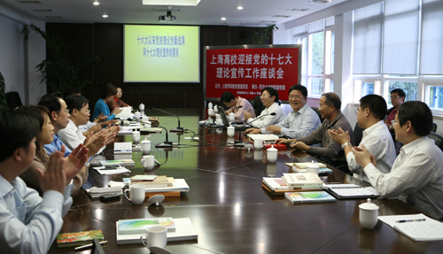 10月10日下午,来自上海20多所高校的党委宣传部长和部分专家汇聚我校,交流十六大以来党的创新理论的研究心得,研讨党的十七大理论宣传工作。校党委书记周家伦出席会议并讲话,校党委副书记陆敏恂出席。