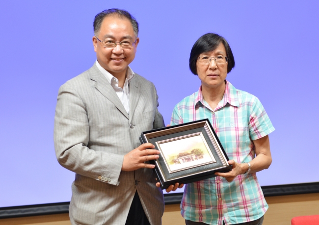 副校长江波参加了报告会并向耿焱赠送纪念品。