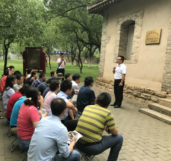 在延安,实践团充分利用延安的红色革命资源,开展了形式多样、内容丰富的学习实践活动。在延安实践团开班仪式上,大家聆听了中国延安干部学院李世明教授带来延安精神专题报告,报告精彩生动全面地诠释了政治方向、实事求是、艰苦奋斗和为人民服务的延安精神“四大法宝”,为青年教师加深实践认识、了解党的历史、学习延安革命精神奠定了牢固的思想理论基础。在之后的学习实践中,青年教师们先后到延安革命纪念馆、王家坪、中国人民抗日军事政治大学、凤凰山、宝塔山、杨家岭、枣园、四八烈士陵园等革命旧址参观学习,聆听现场教学和现场讲解,通过一幅幅照片、一件件历史遗物、一个个场景再现,深刻体会了中国革命波澜壮阔的历史,深入学习了延安时期艰苦奋斗的精神,加深了对新中国成立及发展历史的认识。在中国人民抗日军事政治大学旧址,队员们在听取“弘扬抗大精神、坚定正确的政治方向”现场课程并参观学习后,纷纷感慨当年的抗大在如此艰苦的条件下,因地制宜进行教学,培养了一大批忠诚于党、忠诚于革命事业的学子和革命骨干,现在作为一名高校教师,要认真学习抗大精神,利用好当下的教学科研条件,为培养党和国家需要的人才而不懈努力。