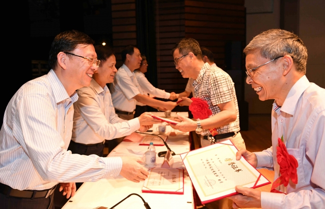 大会对荣获同济大学2017年度“师德师风优秀教师”的教师进行了表彰,政治与国际关系学院仇华飞、附属同济医院许树长、数学科学学院苏育才、土木工程学院李杰、航空航天与力学学院李岩、艺术与传媒学院李巍、环境科学与工程学院杨海真、设计创意学院吴国欣、机械与能源工程学院奚鹰、校机关雷星晖等十位老师获得了2017年度“师德师风优秀教师”,另有21名老师获得提名奖。大会还为30年教龄教师代表颁发了纪念证书。