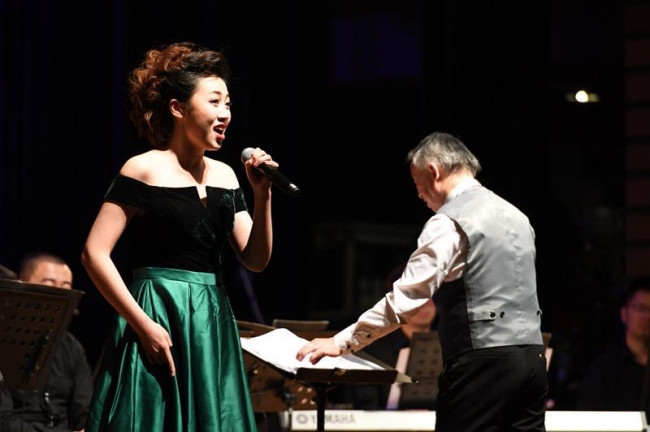 当晚,我校在一二九礼堂举行“朱逢博经典作品音乐会”,由上海轻音乐团、我校音乐与表演系联袂演出,屠巴海担任指挥,上海大学音乐学院院长王勇担任主持。《太阳最红,毛主席最亲》《我爱你,中国》、《我和我的祖国》《红色娘子军》《北风吹》《请茶歌》《美丽的心灵》……近20首朱逢博经典代表作品,由杨学进、李巍等歌唱家,及王伊达、秦路、贾童谣、李彦锋、温凯蓝等我校音乐与表演系师生共同演绎,深情讴歌党、祖国和人民。音乐会还邀请到来自“一带一路”国家哈萨克斯坦的同济留学生阿力努尔参与演出。