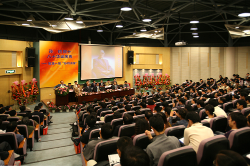 为了弘扬孙钧院士的学术思想,学习他的治学精神,发扬尊师重教的优良传统,传承老一辈教育工作者的优良品质与道德风范,激励后代学子,推动我国土木工程事业的继续发展,在孙钧院士生八十寿辰之际,地下建筑与工程系建立了“孙钧讲座”平台。拟每年举办数次“孙钧讲座”,进行学术交流;同时创立“孙 钧讲座基金”,以支持“孙钧讲座”活动。在首届“孙钧讲座”上,孙钧院士和曾任国际岩石力学学会主席、现任日本岩石工程学会(岩盘工学研究会)会长的樱井春辅先生分别做了题为《“工程结构耐久性/服务寿命预测研究”》和《Back Analysis in Geotechnical Engineering(岩土工程反分析)》的报告,讲座吸引了众多学子,许多外地学生也纷纷赶来聆听,将近四百人的会场座无虚席,气氛十分热烈。