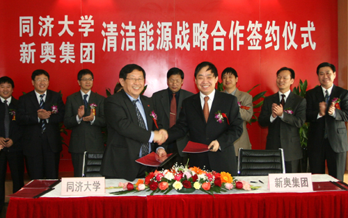 新奥集团创建于1989年,是以能源分销、能源装备、能源化工、生物化工等为主要产业的综合性企业集团,拥有员工2万余人,总资产超过170亿人民币,100多个全资、控股公司和分支机构分布在国内60多个城市及英国、美国、澳大利亚等国家的重要城市。同济大学和新奥集团双方本着“优势互补,双赢互利”的合作原则,在氢燃料储运标准、氢燃料加注站建设标准及其系列设备、二甲醚等新能源的推广应用、相关人才培养与交流等方面进行战略合作。