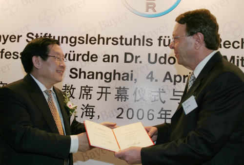 Oels博士是德国拜耳股份公司董事局成员。在他的关心下,我校与拜耳公司开展了全面的合作。拜耳公司先后资助在我校成立知识产权基金教席和可持续发展基金教席。