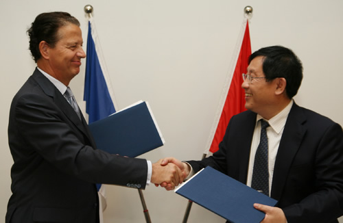 万钢校长与Perben部长首先举行了简短的会谈。万钢校长介绍了我校对法合作交流概况、中法中心工程进展以及我校在能源、汽车与可持续发展方面所做的研究。Perben部长大力赞赏我校的对法合作,尤其是与该部属下的法国国立桥路学校之间长达10年的成功合作。鉴于交通、装备、旅游与海洋部同时掌管法国的城市规划与领土整治,Perben部长表示希望借鉴我校在城市规划领域的经验和技术,并进一步加强该领域的中法合作。此外,Perben部长专门提及了法国总统希拉克阁下对我校中法中心与中法工程师学院项目的关注,并仔细询问了我国与我校电动与燃料电池汽车研发情况。