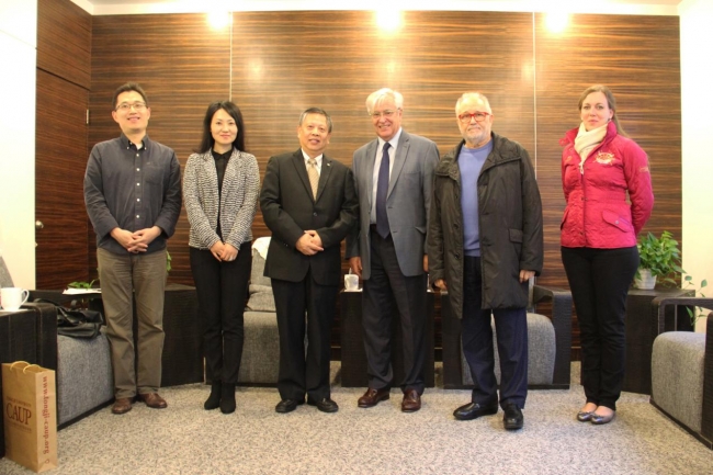 会谈结束时,伍江向克洛斯博士赠送了我校已故著名园林专家陈从周教授的典藏版《说园》。参加会见的还有克洛斯博士的特别助理Christiansen女士、建筑与城市规划学院黄怡教授、联合国环境规划署-同济大学环境与可持续发展学院王信副院长,以及受聘于建筑与城市规划学院高峰团队的西班牙著名建筑师埃斯比洛(Acebillo)教授。