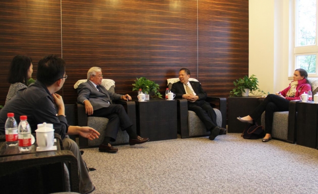 10月29日下午,联合国人居署执行主任、我校名誉教授华安•克洛斯(Joan Clos)博士在上海参加“世界城市日”庆祝活动之际,对我校进行了访问。常务副校长伍江会见了华安•克洛斯博士,进行了亲切会谈。