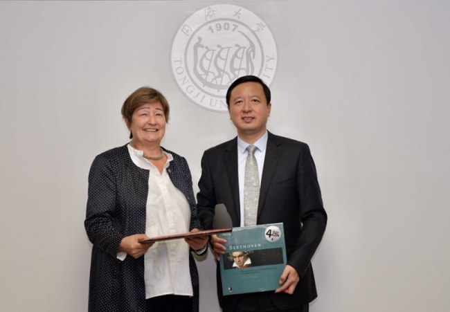 10月11日下午,正值我校中德学院20周年院庆之际,校长陈杰在逸夫楼分别会见了达姆施塔特工业大学校长Hans Juergen Proemel、曼海姆应用科技大学校长Dieter Leonhard、波鸿鲁尔大学校长Axel Schoelmerich、柏林工业大学Christian Thomsen、德意志学术交流中心秘书长Dorothea Rueland博士、德国联邦教育与研究部国际司亚太处等代表团,与对方就同济对德合作的未来发展进行了友好、深入的探讨。