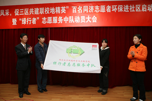 “我志愿加入‘绿行者’志愿服务中队,承诺从我做起,保护环境,为建设上海和谐人居作贡献……”11月21日下午,在志愿者代表的宣誓声中,“百名同济志愿者环保进社区”行动计划在我校环境学院正式启动。