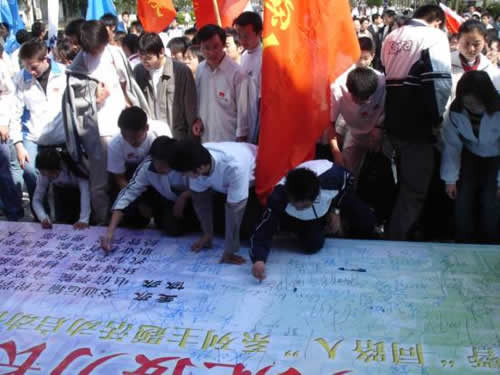 在火炬手的带领下,由7个学院学生代表所组成的第一方阵沿着既定路线开始长跑。整齐的队伍,统一的服装,一致的步伐,还有那随风跃动的火焰,吸引了沿途众多师生们驻足观看。长跑的队伍在依次经过参加本次活动的各个学院的主楼后在毛主席像前完成了第一次交接。随后由交通学院学生代表组成的第二方阵继续向第二接力点前进。在经管学院楼前完成了第二次火炬交接,由6个学院学生代表组成的第三方阵同学完成本次活动的最后一段路线。三个方阵最后都回到了大礼堂前,在本次活动的巨幅宣传横幅上留下了自己的名字,寄托对百年同济的深切祝福。