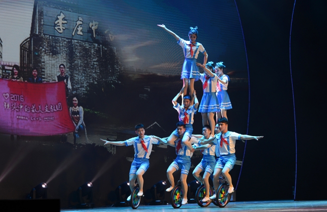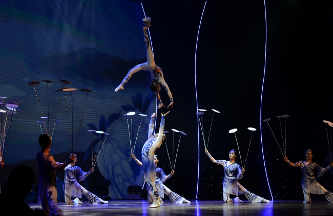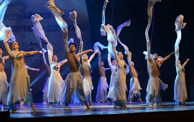 蜀地文艺形式丰富,宜宾市酒都艺术研究院的表演者还特地带来了具有浓厚四川特色的杂技、川剧集锦。在《青花韵》的演出中,演员用身体技巧完成了一项项高难度的动作;《梦飞翔》的独轮车演员,在欢快音乐鼓点中完成一项项让人心惊肉跳的空翻与旋转;久负盛名的川剧变脸,在一张纸扇的轻摆中刷刷变换着不同的脸谱,让观众大饱眼福;学生艺术总团的闪亮出场,用美丽的歌喉与活泼的舞蹈展现了学子们青春的风采。 整个演出节奏紧凑明快,豪迈的舞曲、扣人心弦的杂技、鲜艳的色彩与热情的情绪展现出鲜明的川蜀风格。“多情的长江水,荡漾着情与谊。”在一曲《共饮长江水》柔情婉转的歌唱声中,本场演出结束,也标志着2016年同济大学艺术节圆满落下帷幕。