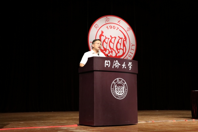 徐建平、雷星晖向新生们介绍了同济大学111年来的发展历程和未来发展的目标,殷切期望所有新生不仅是同济大学创建世界一流大学的见证者,也是重要的参与者,希望每位新生依托同济大学的办学优势,成长为德智体美劳全面发展的社会主义建设者和接班人。