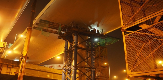 此时,不眠不休的抢修突击队,已经将中环事故中桩号为ZN834-ZN835立柱间的钢箱梁,通过顶升平移“消除”了40厘米的高差和水平位移,梁体上下左右都对齐咬合到了事故前的状态,但是桥面浇筑、立柱修复都在等着突击队员们各尽其责、各显其能。