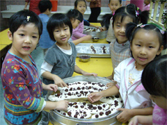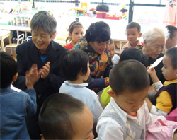10月19日上午,幼儿园组织孩子与老人们一起看魔术表演、做贺卡,为老人们捶背、表演节目,和老人们亲密交谈、制作“糕糕”祝贺老人……;下午,大班的孩子们带着自己的“作品”走入社区,送给老人们,中班、小班的孩子们则将哥哥姐姐送的“作品”带回家里,送给自己的长辈……。这“一做”、“一送”、“一抱”、“一说”无不体现对老人的尊敬和关爱,体现了中华美德的传承,同时也让孩子们在大胆地交往、沟通中,体验到节日带来的快乐。