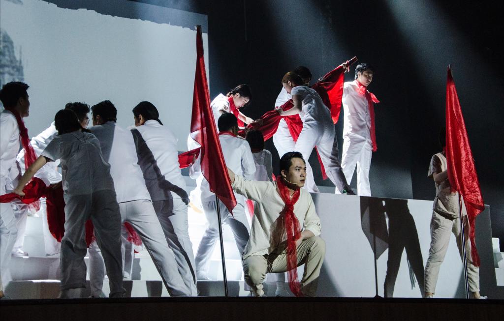 诗剧的第四篇章《五卅纪念碑:愤怒的鲜血》中展现的历史人物殷夫烈士,是“左联”五烈士之一、革命诗人、同济大学杰出校友。在同济求学期间,他写下了数十首诗作,这些作品抒发了对反动统治的强烈憎恨和对光明世界的向往之情,表达了献身革命的坚定决心。