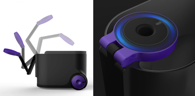 YARA的可旋转LED光圈,在识别植物并规划飞行路线后发射紫外线光除虫,在阴天发射红蓝光促进植物生长。它可以通过热源与色彩识别了解植物是否健康,并在发现人类靠近时及时灭灯以保障安全。它既能分析植物的生长状态数据,又能通过拍照记录花园的美丽,并远程将这些数据和照片发送至APP,为园艺爱好者提供一个知识百科与社交平台。