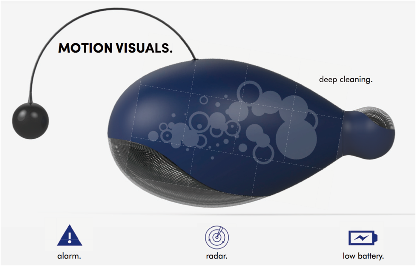 “子非鱼,焉知鱼之乐?”知鱼之乐,焉知鱼之痛?养在鱼缸里的鱼怎么养护?FISHBOT为家庭鱼缸养护提供了优质的全方位解决方案。设计初衷是希望协助对家庭养鱼有兴趣的年轻人更好地去关护家庭里的鱼类成员。鱼形的机器拥有预安装在底部的高效水质清洁系统,藏在机器内的快速反应报警系统,内置在圆形外抛造型内的高敏监控系统和实时摄录一体相机。这些装置能探测到最细微的水环境变化,使忙碌的年轻人在养鱼过程中更为轻松。此外,通过辅助的应用程序,机器人能够更密切地将用户与鱼类联系起来,减少意外发生。