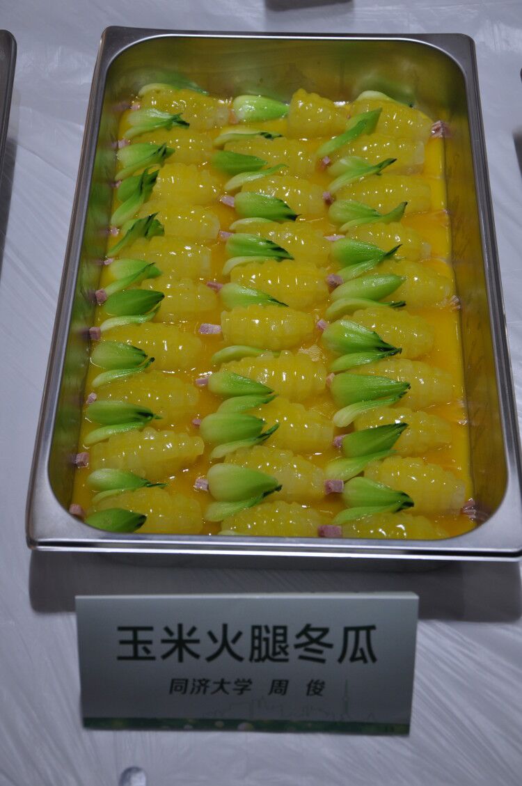同济大学参赛队伍由同济大学后勤集团负责人带队。红案参赛选手分别是周俊、宛江飞、张明凤,他们的参赛作品是分别是玉米火腿冬瓜、青椒茭白肉丝、八宝辣酱。白案参赛选手是余佳、樊露露、陶勖,他们的参赛作品分别是生煎包、香菇素菜包、香辣粉丝包。比赛开始后,来自各院校的大厨们手段齐出,“煎、炒、炸、烩”个个拿手,每道菜都经过精心设计,力求“色、香、味、形”样样俱全。历经数个小时的比赛后,同济大学的参赛菜品均以全场项目最高分获得红案第一、白案第一的优异成绩。同时,6名参赛选手也均以比赛单项最高分斩获六个第一名。