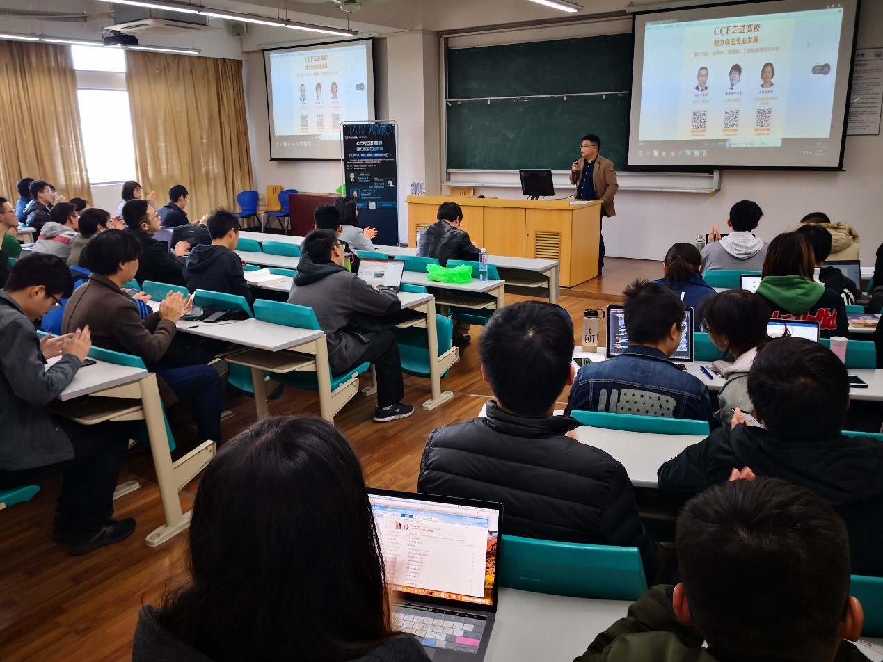 11月23日下午,在中国计算学会CCF的支持和CCF容错计算委员会的组织下,我校软件学院邀请到国家“杰出青年基金”获得者、清华大学杨华中教授,国家“优秀青年基金”获得者、中科院计算技术研究所韩银和研究员,国家特聘青年学者、北京航空航天大学王晓晓教授,开展“CCF走进高校”活动暨软件学院图灵讲座。
