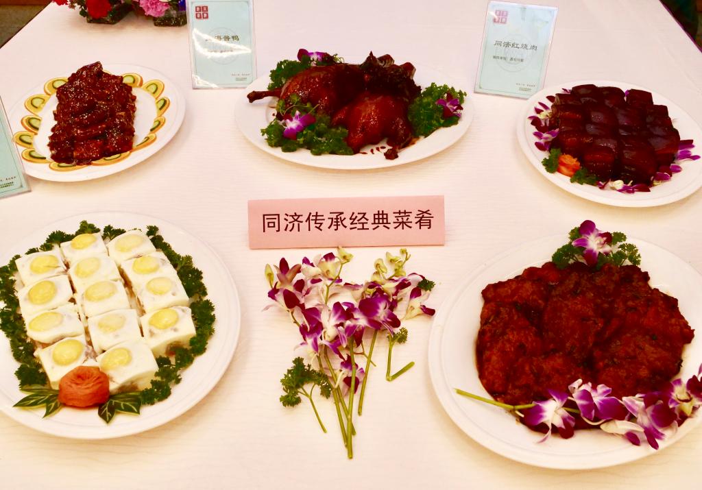 记者在现场看到,白案展区有校徽蛋糕、紫薯玫瑰花馒头、红糖糍粑等35道中式面点及西式糕点;红案展区的61道菜肴中,有肉末火山土豆泥、仔藕多味鸡、五彩黄鱼腩、农家菜一锅香等诸多美味,其中不少是创新菜;清真展区,有香辣羊排锅巴、馕包肉等11道特色风味。另有同济红烧肉、大排、糖醋小排、上海酱鸭等同济经典菜肴,在现场作展示。这些菜品选材考究,制作精良,同济大学各校区各食堂的大厨们纷纷拿出看家本领,“煎、炒、炸、烩”样样齐出,每道菜都经过精心的设计和制作,让在场师生评委纷纷点赞,一饱口福。