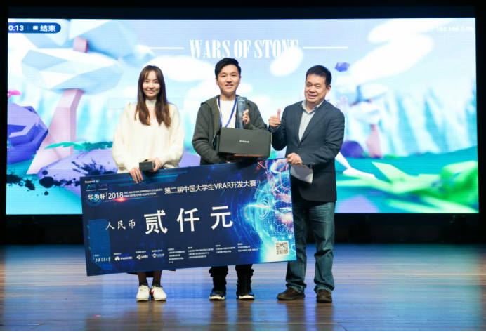 华为技术有限公司ARVR事业部总裁李腾跃为《Wars of Stone》团队颁发“最具价值奖——华为杯”