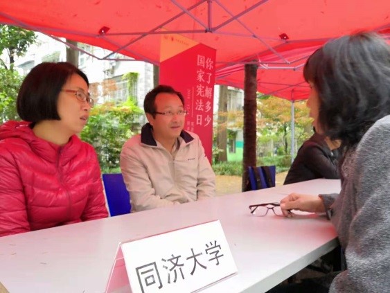 12月4日,在国家宪法日之际,同济大学法学院党委和团委依托全体教工支部、学生支部、学生社团、“遮阳伞”志愿服务队,组织全院广大党员师生,深入四平路校区南大道、学生社区、四平路街道苏家屯路抚顺路居民社区,积极开展宪法宣传周主题活动。同济大学法学院负责人、学院全体党员师生共同参与此次主题活动。