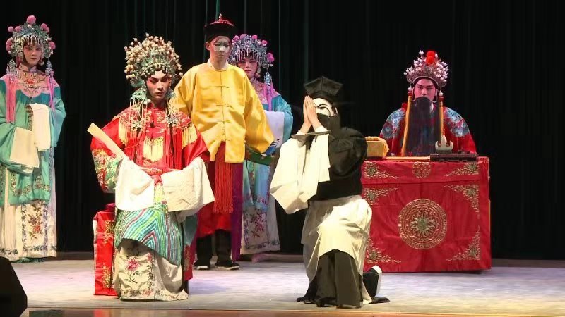 戏曲汇演在越剧《十八相送》中拉开序幕。演员们以饱满的热情、认真的表演给观众展现了丰富多样的节目,耳熟能详的越剧名段、清雅隽秀的昆曲故事、刚柔相济的京剧情节给热爱戏曲文化的观众们带来了一场精彩的视听盛宴。最后,场面宏大的《大登殿》将演出现场的气氛推至高潮。