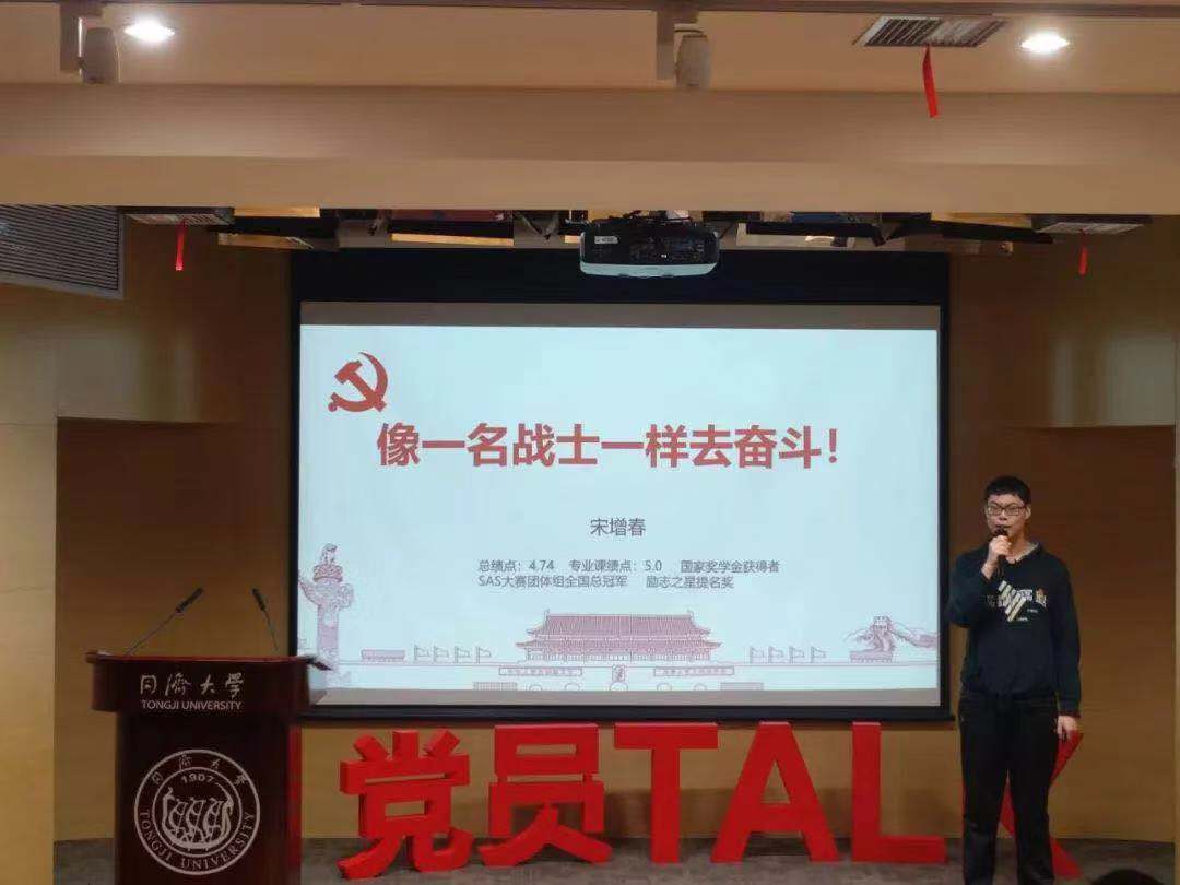 宋增春同学是一个名副其实的“学霸”,他曾经获得国家奖学金,刚刚拿到同济大学励志之星的提名奖。昂扬饱满的求知欲、永不言弃的抗挫力、心怀天下的使命感使他一直保持着最佳的学习热情和学习状态,人工智能、大数据应用的广阔前景,数学人才的培养一定为时代所需,他带领同学们一同畅想,从2020到2050,“90后”“00后”的一代要用最宝贵的年华、最执着的追求和最无私的奉献,努力成为中国腾飞的中流砥柱。