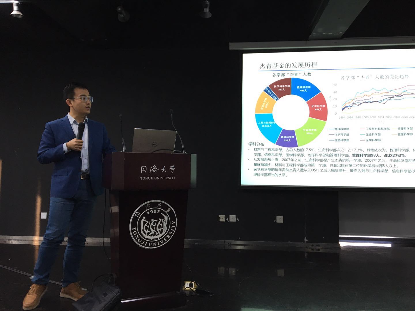 史冬波博士为上海交通大学国际与公共事务学院特别副研究员,主要研究领域为创新管理、科技政策等。讲座中,他基于高水平的论文、国家级科技人才计划及科研奖项等大数据,分析了科技人才的成才路径、学科发展规律,为科技评价、政策评估提供积极的建议,为高校选人、用人提供有意义的思路及方法。讲座形式轻松、氛围热烈,引发了积极的互动与讨论。