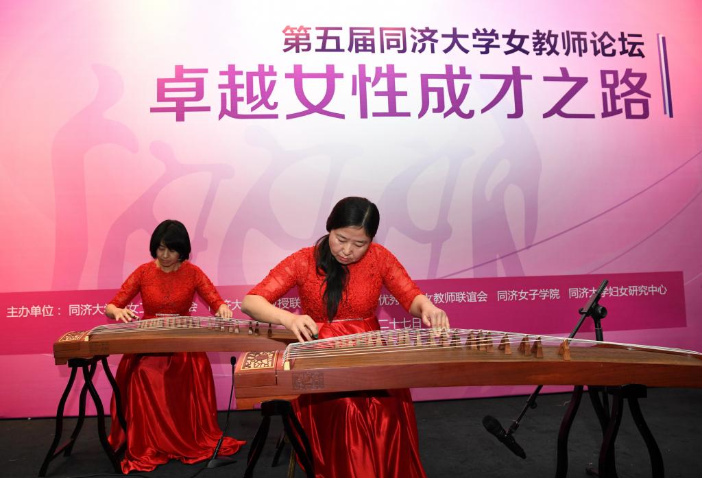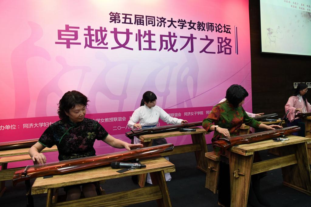 论坛之后,同济大学女教职工旗袍服饰文化社、同济大学民乐社、同济大学古琴研习基地的老师和同学演出了精彩的文艺节目,展现我校女教职工近年来的文化传承创新活动成果。