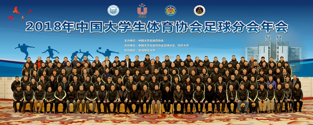 2019年1月3日—1月6日,“2018年中国大学生体育协会足球分会年会”在安徽师范大学召开。本次活动由中国大学生体育协会主办,中国大学生体育协会足球分会、同济大学承办,安徽师范大学协办。来自全国164所高校的近130名与会代表参加了本次会议。会议对2018年中国大学生体育协会足球分会工作进行了全面总结,对2019年足球分会的工作进行了部署。